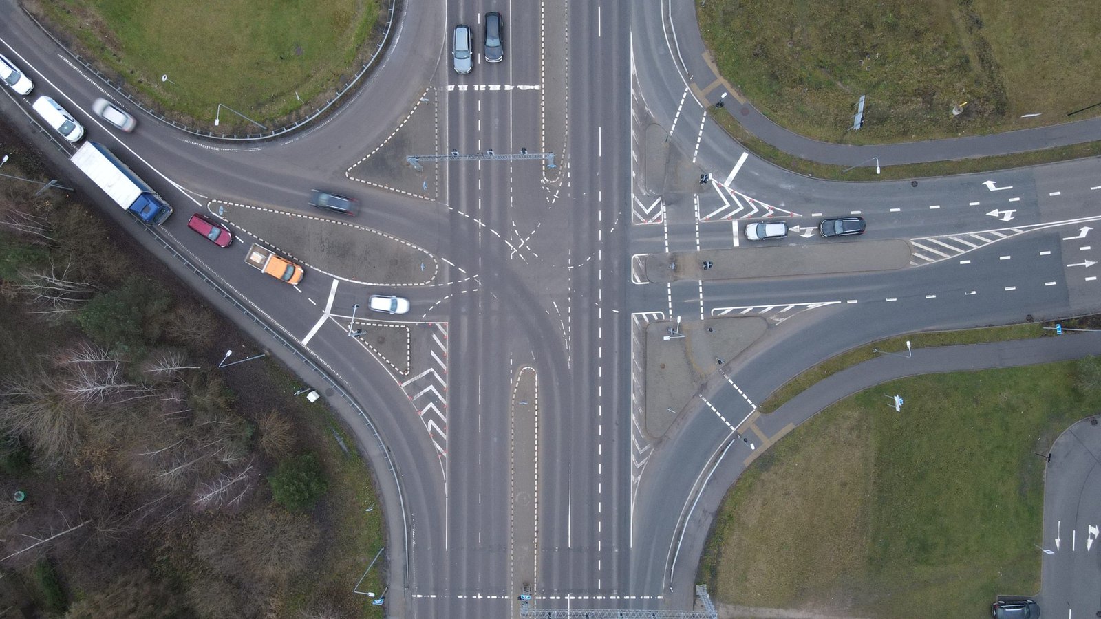 Принцип частичного регулирования широко применяется в Западной Европе: мигающий жёлтый сигнал лишь предупреждает водителей, но не регулирует движение, поэтому они руководствуются знаками приоритета. Красный сигнал включается только при необходимости временно остановить движение, например, при нажатии пешеходами кнопки вызова. Зелёный сигнал сознательно не используется, чтобы не создавать ложного впечатления беспрепятственного движения. Мигающий жёлтый напоминает водителям, что поворот является нерегулируемым и они обязаны уступить транспортным средствам на главной дороге и, используя полосу разгона, безопасно влиться в поток на дороге A14.